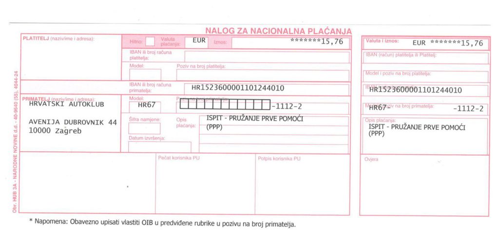 Podaci za uplatnicu ispita iz pružanja prve pomoći (PPP)