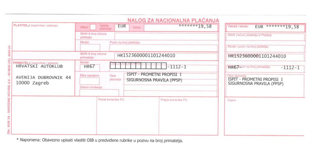 Podaci za uplatnicu ispita iz prometnih pravila i propisa (PPSP)